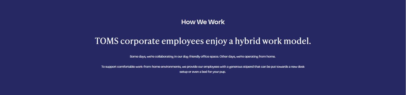 TOMS amplovees have plenty of opportunities to get to know our Giving Partners frst-hand and volunteerin the communityincluding Heling Happy Hours,Annual Day of