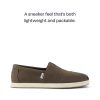 Impactful Alpargata slip-ons with signature TOMS style, now available in waxed recycled cotton uppers. Easygoing and casual in canteen green, these go-to shoes pair well with jeans, tees and everything in between. Recycled cotton upper-made with at least 50% recycled cotton which helps keep waste out of landfills and requires less water and energy than conventional cotton.