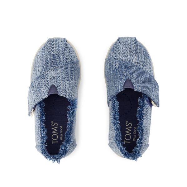 The Alpargata shoe for toddlers now features comfy CloudBound™ insoles that are built for serious play. Your mini can put them on themselves with easy hook and loop uppers and a roomier entry. Finished in denim with fray detailing and a matching pair for mom. Textured denim upper with fray detailing.
