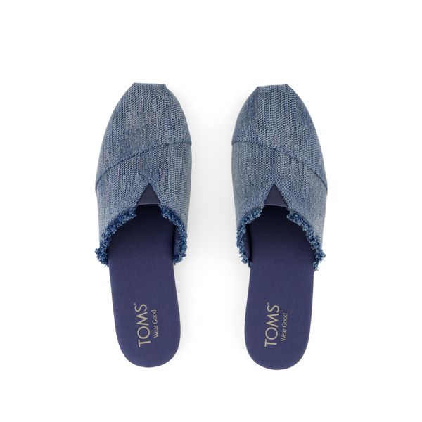 As laid back as it gets. Our new Alpargata Mule is easy to love and style. Paired with jeans or dresses, this closet staple slips on effortlessly with our iconic toe-shape design and cushy CloudBound™ insoles. Textured denim upper with fray detailing.