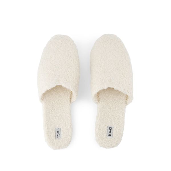 Part Alpargata, part mule—all style. This slip-on has a signature TOMS silhouette, natural-hued uppers with faux shearling and an open back to slide on and off with ease. Custom CloudBound™ insoles offer outstanding comfort and support.Natural textile/faux shearling upper.