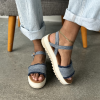 Our Brynn sandal features the added height we know you love, a strappy design for comfortable style and a sawtooth bottom for no-slip grip. Pair with flowy dresses or cropped denim for anything on your warm-weather agenda. Denim upper with fray detailing.