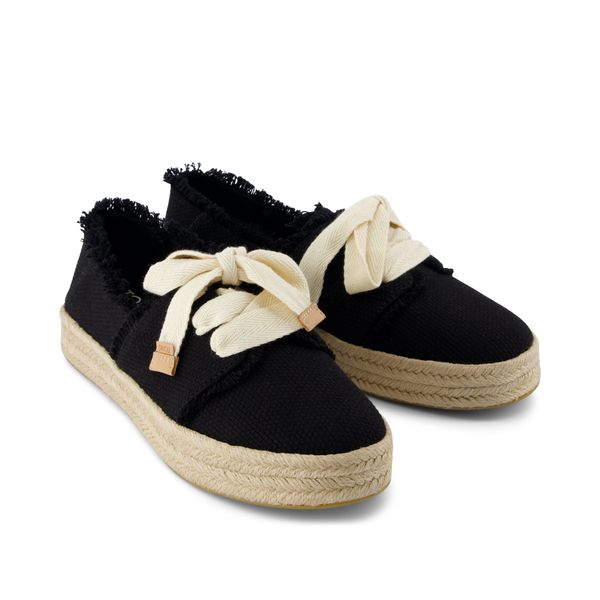 The ultimate feminine slip-on. Our new Carolina Lace-Up features fray detailing, a rope-wrapped platform and oversized laces for a pop of playful style. Lace them up with dresses or jeans for a bit of prep in your step. Woven textile upper with fray detailing.