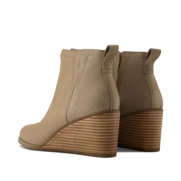 A high-heel boot with even higher style. The Clare is made of beige Nubuck leather and suede with a stacked wedge that takes any outfit up a notch. A heel tab and CloudBound™ insoles provide comfort and ease.Nubuck leather and suede uppers. TOMS leather products support responsible manufacturing via the Leather Working Group.