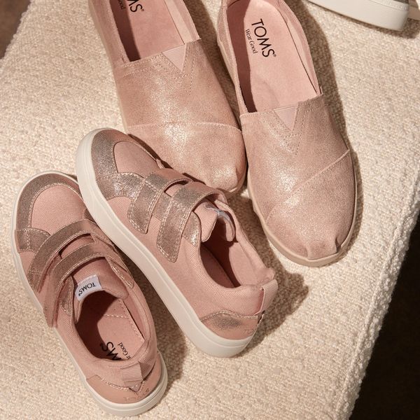 Pale Rose Metallic PU, 10022121TOMS run true to size and are available in medium width only. We recommend ordering the size you normally wear. If you are typically in between sizes, we recommend going with the smaller one since TOMS will stretch slightly as you break them in.