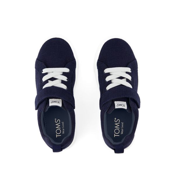 TOMS’ new classic lace-up sneaker for kids. The Cruz features stretch laces, hook and loop straps and heel pull tabs so your little one can get them on and off with ease. Finished in versatile Heritage Canvas uppers to match with everything in their closet. Heritage Canvas upper is made with 68% jute—a fiber that relies on rainwater to grow. The remaining 32% is made from cotton.