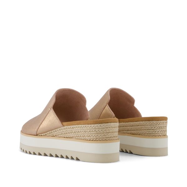 Our best-selling wedge sandal in a mule silhouette. The sleek mid-height Diana platform mule is designed with a chic rope wrap and snug-fitting metallic suede upper for an elevated feel. Dress them up or down with your favorite looks. Metallic suede upper. TOMS leather products support responsible manufacturing via the Leather Working Group.