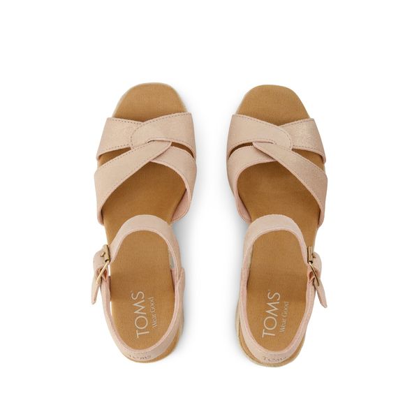 The heeled sandal of your dreams. With a rope-wrapped block heel, wide interwoven straps and luxe suede uppers, Isla is the perfect walkable platform. Dress them up for the office or down for effortless-chic everyday wear. Metallic suede upper. TOMS leather products support responsible manufacturing via the Leather Working Group.
