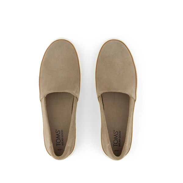 Where simplicity and style meet. With beige suede uppers and a white platform sole, the Kameron slip-on is the perfect companion for errands or play dates with the kids. CloudBound™ insoles provide comfort on days you need it most.Suede uppers. TOMS leather products support responsible manufacturing via the Leather Working Group.