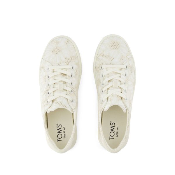 White Floral Eyelet, 10021869TOMS run true to size and are available in medium width only. We recommend ordering the size you normally wear. If you are typically in between sizes, we recommend going with the smaller one since TOMS will stretch slightly as you break them in.