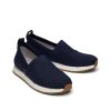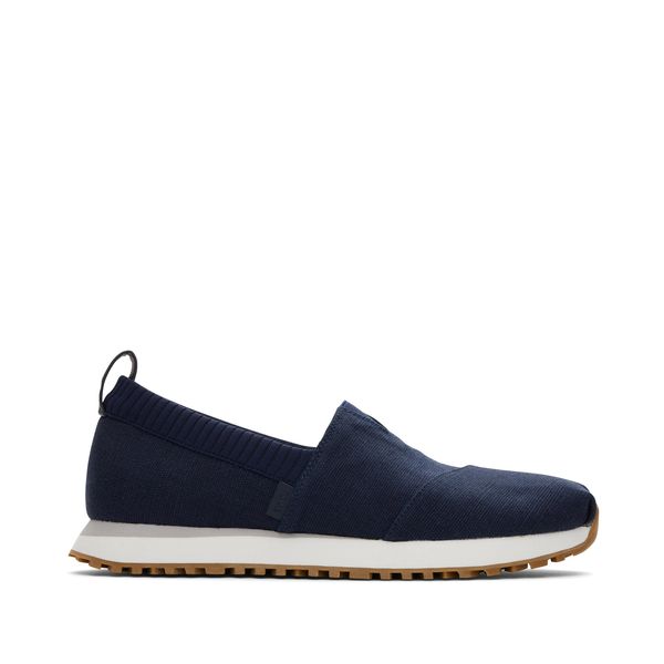 Navy Heritage Canvas, 10020278This shoe has a narrow fit and runs a bit small. TOMS will stretch slightly as you break them in.