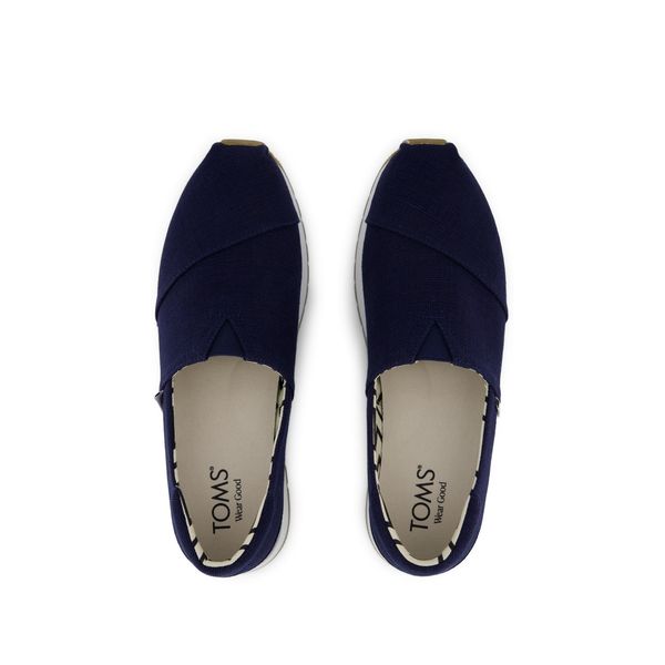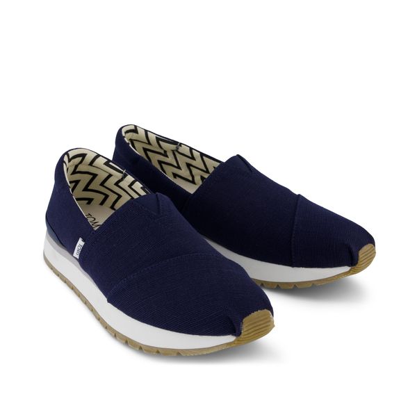 Navy Heritage Canvas, 10022776TOMS run true to size and are available in medium width only. We recommend ordering the size you normally wear. If you are typically in between sizes, we recommend going with the smaller one since TOMS will stretch slightly as you break them in.