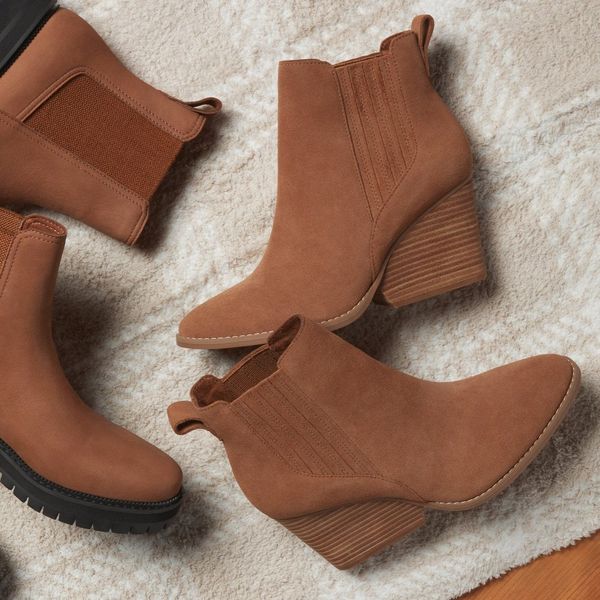 Rise above in the vintage-inspired Noa ankle boot. A sculpted leather-wrapped wedge gives this Chelsea boot the perfect amount of lift, offset by versatile brown suede uppers. CloudBound™ insoles provide support and feel as light and comfy as a cloud so you can float through your day with ease.Suede uppers. TOMS leather products support responsible manufacturing via the Leather Working Group.