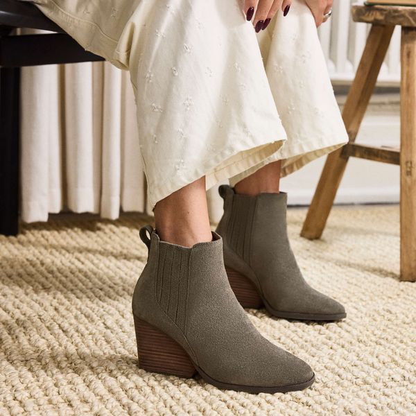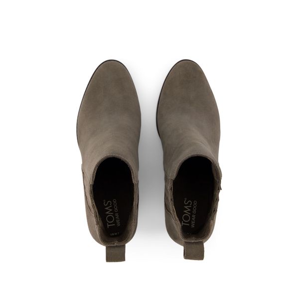Rise above in the vintage-inspired Noa ankle boot. A sculpted leather-wrapped wedge gives this Chelsea boot the perfect amount of lift, offset by versatile olive suede uppers. CloudBound™ insoles provide support and feel as light and comfy as a cloud so you can float through your day with ease. Suede uppers. TOMS leather products support responsible manufacturing via the Leather Working Group.