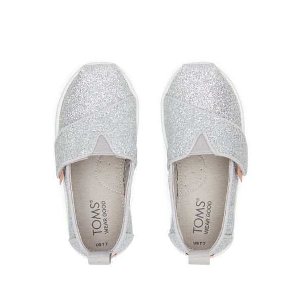 Silver Glitter, 10011457TOMS run true to size and are available in medium width only. We recommend ordering the size you normally wear. If you are typically in between sizes, we recommend going with the smaller one since TOMS will stretch slightly as you break them in.
