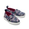 Navy Embroidered Floral, 10020623TOMS run true to size and are available in medium width only. We recommend ordering the size you normally wear. If you are typically in between sizes, we recommend going with the smaller one since TOMS will stretch slightly as you break them in.
