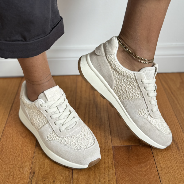 Meet the TRVL LITE Retro: Throwback style that feels like walking on a cloud. A chic, everyday sneaker, this look shows off suede and Moroccan crochet uppers for a textural, tonal look. Wear to work or a weekend brunch.Suede and Moroccan crochet upper. TOMS leather products support responsible manufacturing via the Leather Working Group.
