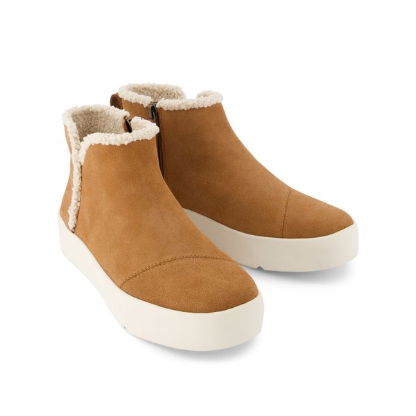 Zip up and head out in style with the Verona ankle boot. Made with our T-Flex system technology, this winter-ready shoe boosts flexibility and reduces foot stress. Faux-fur lining and a brown suede upper ensure a cozy and comfortable fit.Suede uppers. TOMS leather products support responsible manufacturing via the Leather Working Group.
