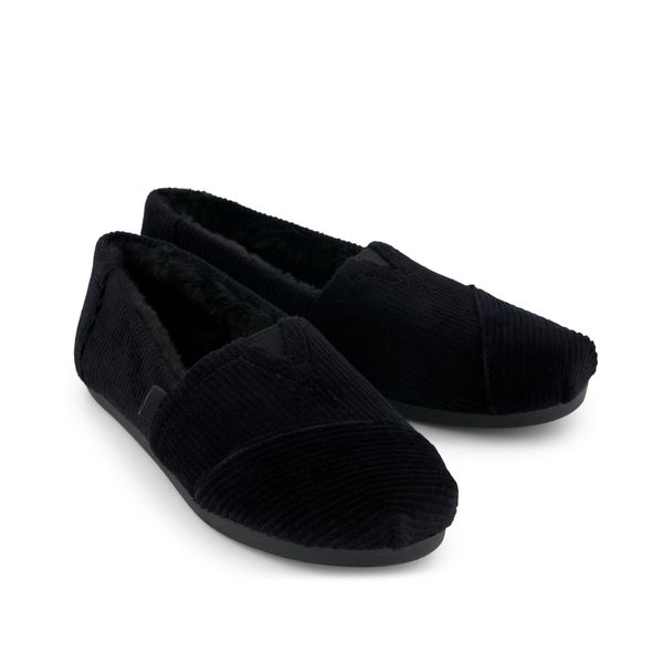 The Alpargata Classic: A TOMS original closet staple with a holiday party-ready spin. These slip-on shoes balance style and function seamlessly with velvet ribbed uppers and cozy faux fur linings—plus CloudBound™ insoles for superior comfort and support.Ribbed velvet upper.