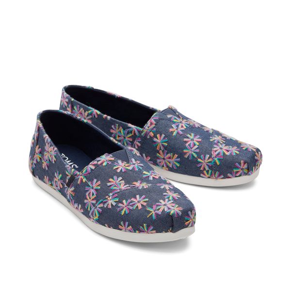 Embroidered Floral Navy, 10020650TOMS run true to size and are available in medium width only. We recommend ordering the size you normally wear. If you are typically in between sizes, we recommend going with the smaller one since TOMS will stretch slightly as you break them in.