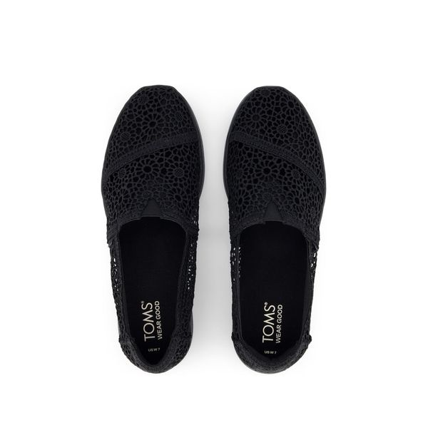 Black Moroccan Crochet, 10021549TOMS Alpargata Plus has a relaxed fit. We recommend ordering the size you normally wear. If you are used to our slimmer fitting Alpargata Classic, then we recommend sizing down half a size for a more snug fit.