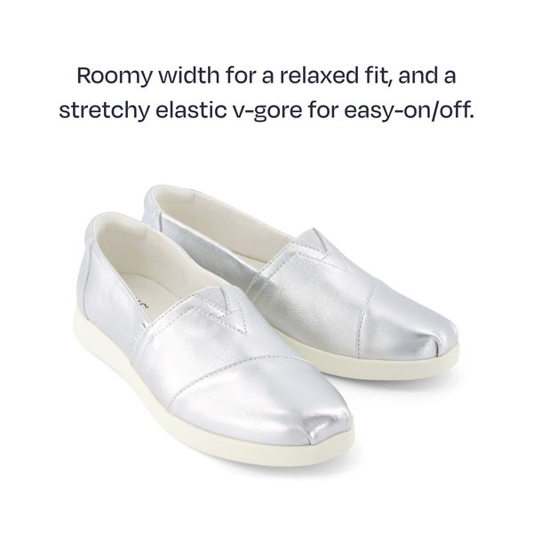 Silver Metallic, 10021745TOMS Alpargata Plus has a relaxed fit. We recommend ordering the size you normally wear. If you are used to our slimmer fitting Alpargata Classic, then we recommend sizing down half a size for a more snug fit.