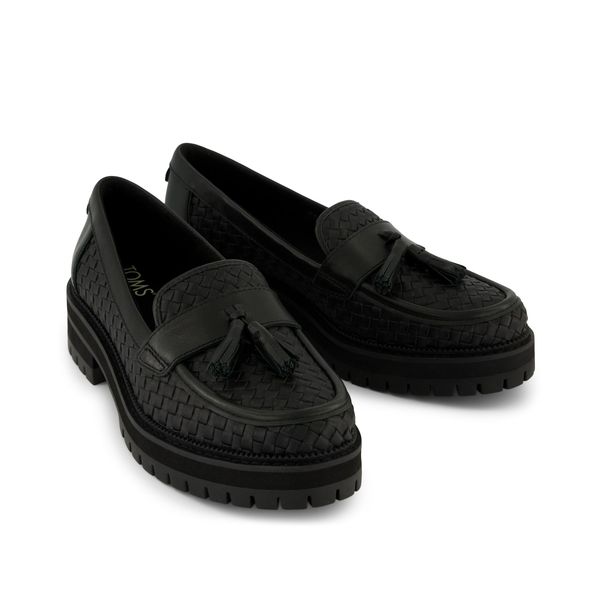 Level up your look with the Cara loafer—featuring perfectly chunky lugged soles and sleek leather uppers with tassels and basket-woven texture. Standing 1 1/2″ tall with a rubber grip and CloudBound™ insoles, this go-with-anything style is both comfortable and supportive.PU and leather upper with basket-woven detailing. TOMS leather products support responsible manufacturing via the Leather Working Group.