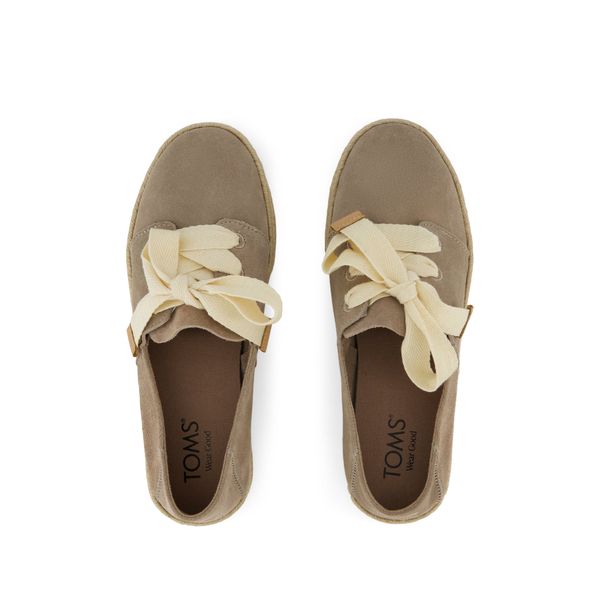 The ultimate feminine slip-on. Our new Carolina Lace-Up features oversized laces, a rope-wrapped platform and chic suede uppers. Lace them up with dresses or jeans for an easy everyday look. Suede upper. TOMS leather products support responsible manufacturing via the Leather Working Group.