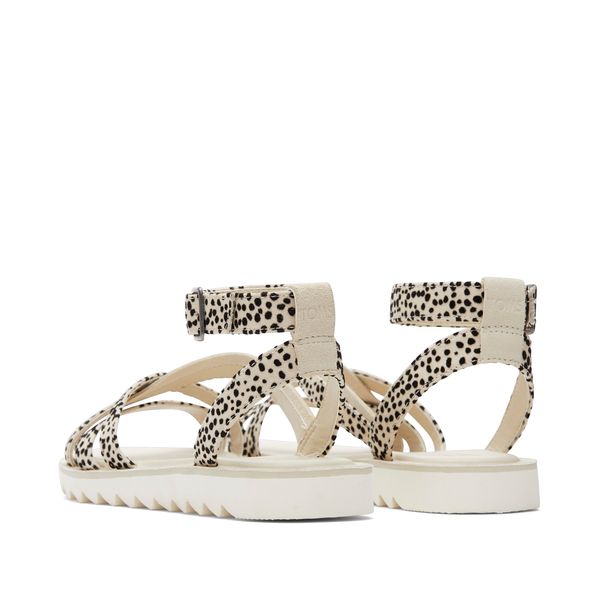 Stylish adventures await in our Rory sandal. We paired our proven no-slip sawtooth grip tread with a super strappy and fun cheetah print upper. The epitome of form meets function—stay cute, comfortable, and ready for anything in this versatile pair.Textile and leather upper with mini cheetah print. TOMS leather products support responsible manufacturing via the Leather Working Group.