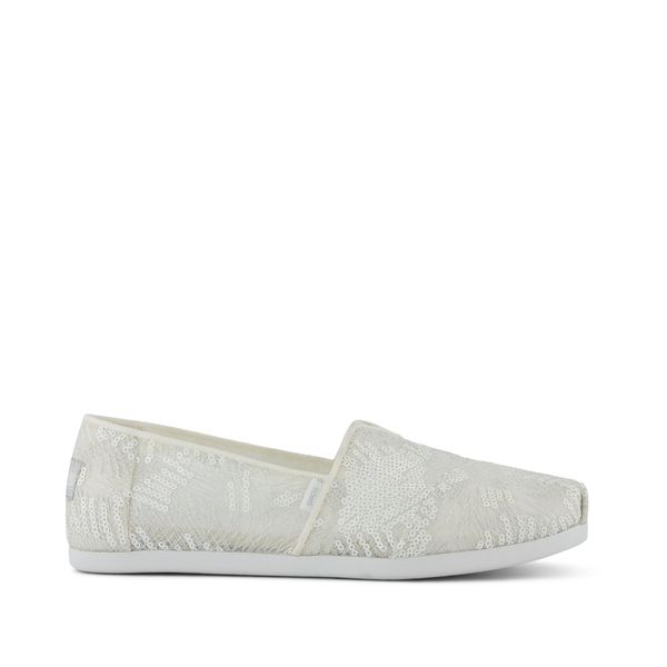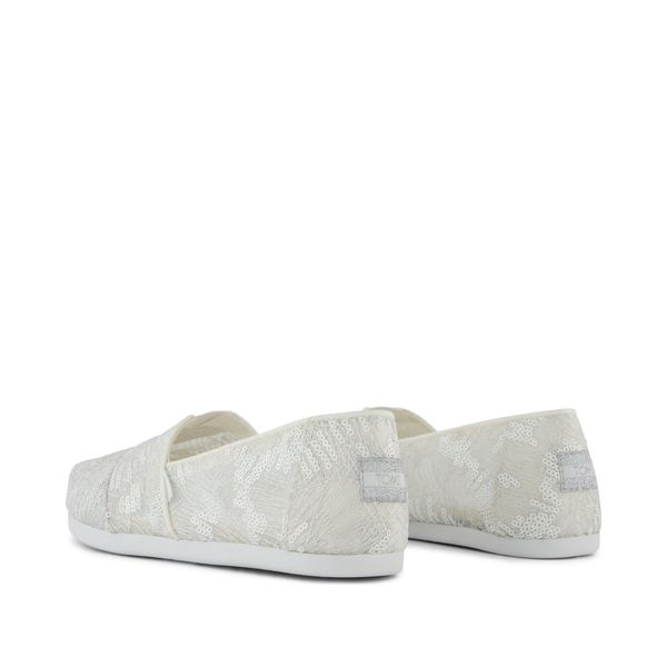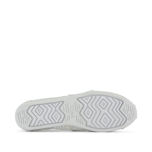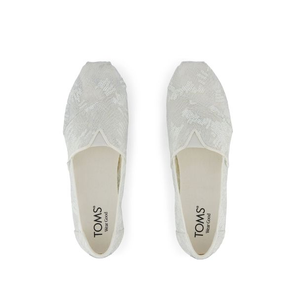 White Sequin Mesh, 10022217TOMS run true to size and are available in medium width only. We recommend ordering the size you normally wear. If you are typically in between sizes, we recommend going with the smaller one since TOMS will stretch slightly as you break them in.