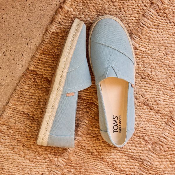 Pastel Blue Washed Denim, 10020704TOMS run true to size and are available in medium width only. We recommend ordering the size you normally wear. If you are typically in between sizes, we recommend going with the smaller one since TOMS will stretch slightly as you break them in.