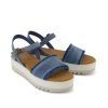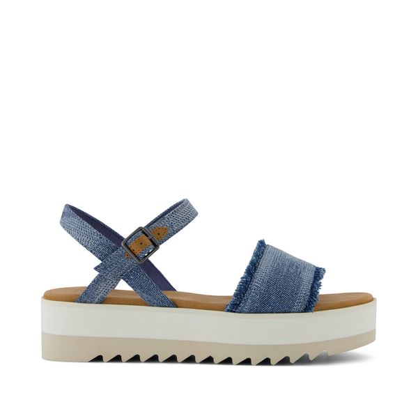 Our Brynn sandal features the added height we know you love, a strappy design for comfortable style and a sawtooth bottom for no-slip grip. Pair with flowy dresses or cropped denim for anything on your warm-weather agenda. Denim upper with fray detailing.