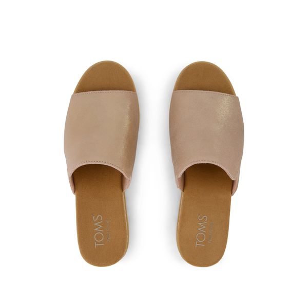 Our best-selling wedge sandal in a mule silhouette. The sleek mid-height Diana platform mule is designed with a chic rope wrap and snug-fitting metallic suede upper for an elevated feel. Dress them up or down with your favorite looks. Metallic suede upper. TOMS leather products support responsible manufacturing via the Leather Working Group.