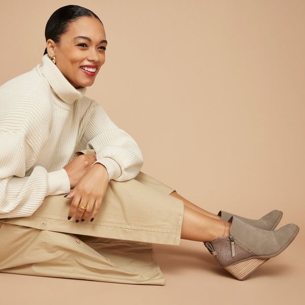 Simple yet stunning, the Goldie ankle boot has gold metallic uppers offset with glittery metallic leather and a two-inch wedge heel for the perfect amount of lift. A side zipper, pull tab and CloudBound™ insoles ensure an easy, comfortable fit.Leather uppers. TOMS leather products support responsible manufacturing via the Leather Working Group.