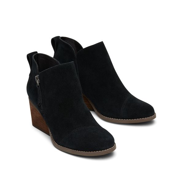 You love wearing the Goldie wedge ankle bootie on repeat! With a just-right heel height, sleek silhouette, and stylish details, this leather-wrapped wedge with a luxe suede upper goes with anything in your closet.Suede uppers. TOMS leather products support responsible manufacturing via the Leather Working Group.