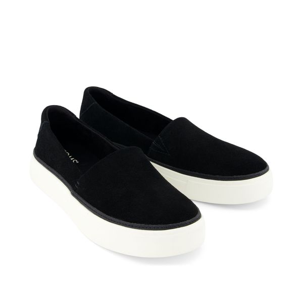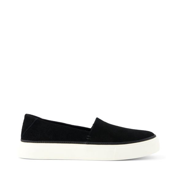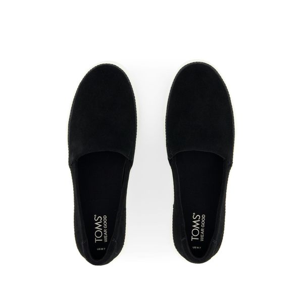 Where simplicity and style meet. With black suede uppers and a white platform sole, the Kameron slip-on is the perfect companion for errands or play dates with the kids. CloudBound™ insoles provide comfort on days you need it most.Suede uppers. TOMS leather products support responsible manufacturing via the Leather Working Group.