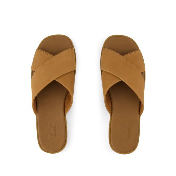 Minimalist style. Everyday ease. Our Mae Crossover sandal features wide straps in luxe leather for a comfortable and chic warm-weather staple to pair with all your favorite looks. Slip them on for beach days, busy weekends and beyond.Leather upper. TOMS leather products support responsible manufacturing via the Leather Working Group.