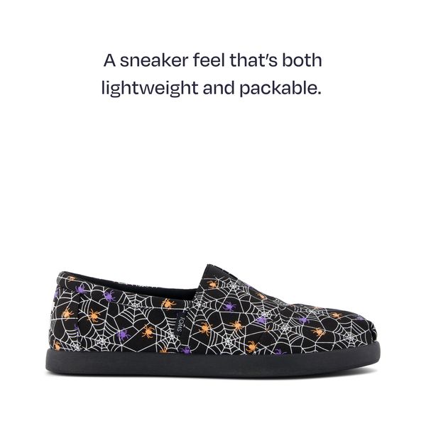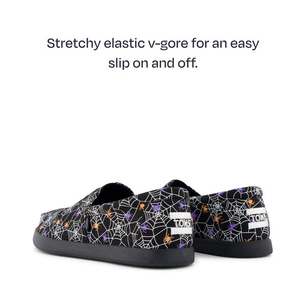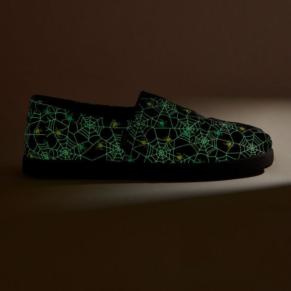 Oh-so-spooky Alpargatas. Perfect for Halloween, these espadrilles feature a classic TOMS silhouette and an unexpected spider print that glows in the dark. Fitted with elastic gore and cushy CloudBound™ insoles for easy entry and long-lasting comfort.Spider-print glow-in-the-dark uppers.