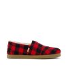 Buffalo Plaid Red Faux Shearling, 10022931TOMS run true to size and are available in medium width only. We recommend ordering the size you normally wear. If you are typically in between sizes, we recommend going with the smaller one since TOMS will stretch slightly as you break them in.