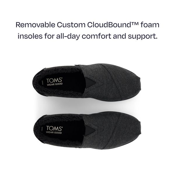 Impactful Alpargata slip-ons with signature TOMS style, now in charcoal with textural herringbone uppers. Casual and easygoing, they pair well with jeans, tees and everything in between. Finished with cushy CloudBound™ insoles for all-day comfort.Herringbone uppers.