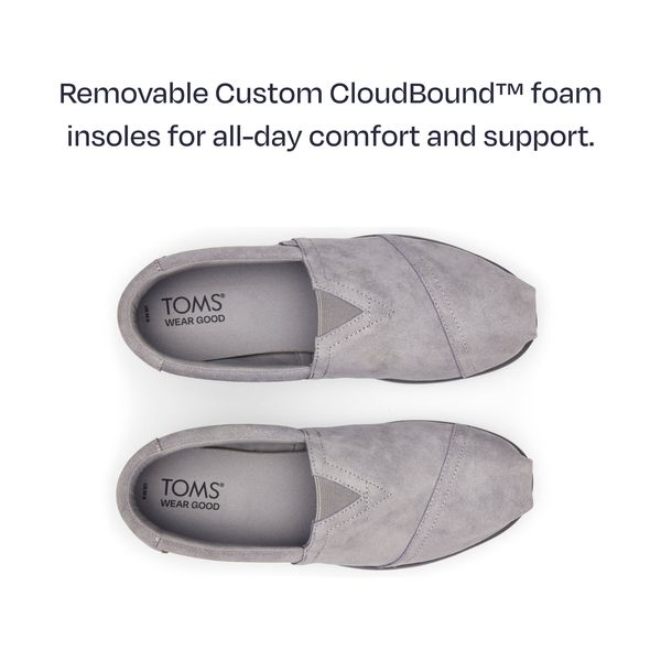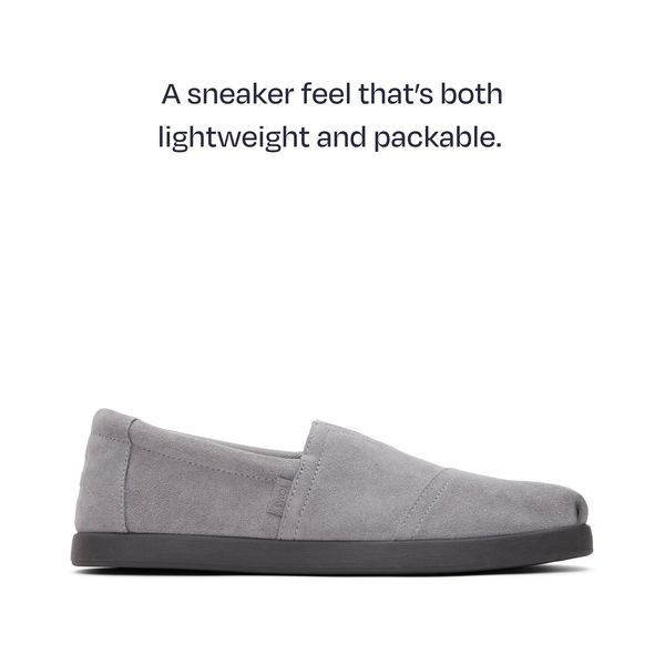 Our iconic slip-on Alpargata takes on new shape in the sneaker-inspired Alp Fwd. Featuring a rubber outsole for increased traction and durability with distressed suede uppers for an elevated aesthetic. Pair with any casual look for a polished effect.Distressed suede upper. TOMS leather products support responsible manufacturing via the Leather Working Group.