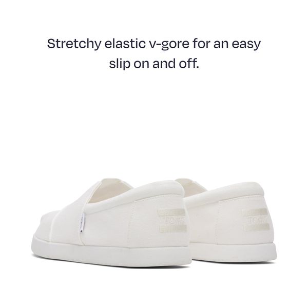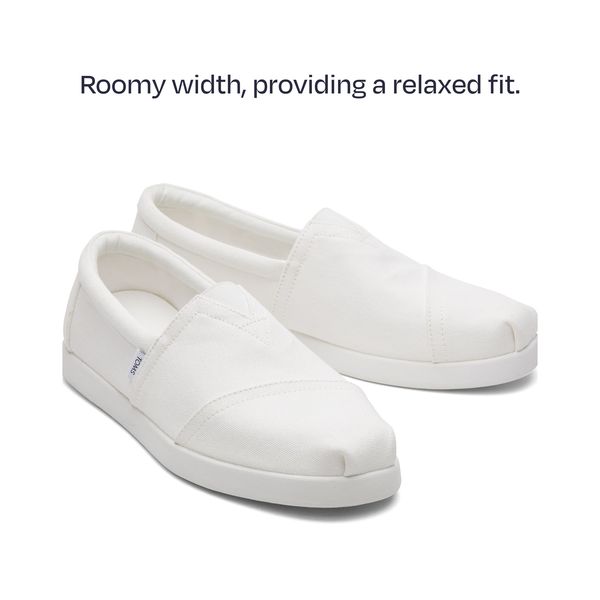 White Recycled Cotton Canvas, 10019876TOMS run true to size and are available in medium width only. We recommend ordering the size you normally wear. If you are typically in between sizes, we recommend going with the smaller one since TOMS will stretch slightly as you break them in.