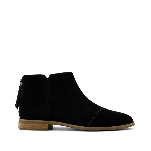Elegance and ease – all in one. The Rylie is an elegant, easy-on ankle bootie featuring soft black suede uppers and a handy heel zip. Featuring CloudBound™ insoles, this latest style promises all-day comfort – perfect for everything from shopping to work to dinner dates.Suede uppers. TOMS leather products support responsible manufacturing via the Leather Working Group.