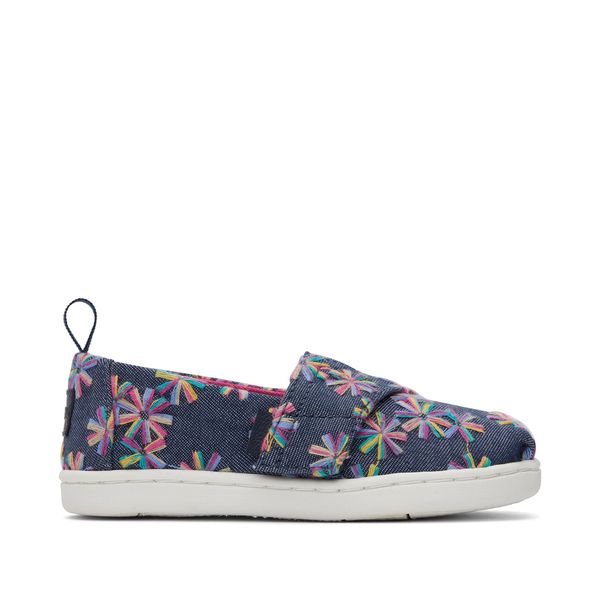 Navy Embroidered Floral, 10020623TOMS run true to size and are available in medium width only. We recommend ordering the size you normally wear. If you are typically in between sizes, we recommend going with the smaller one since TOMS will stretch slightly as you break them in.