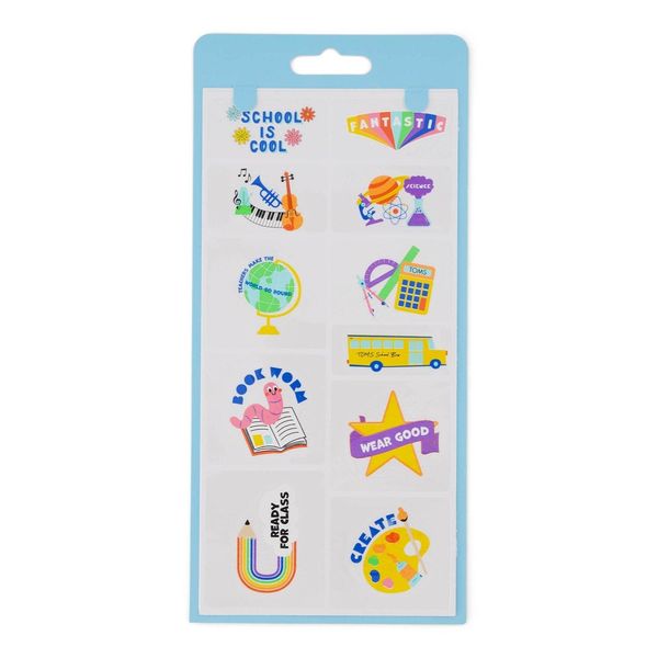 Add fun flair to your favorite pair of TOMS with our all new shoe tattoos, featuring back to school exciting designs. You can also stick them to a notebook, water bottle or phone case—your options are endless.Temporary decorative tattoos.