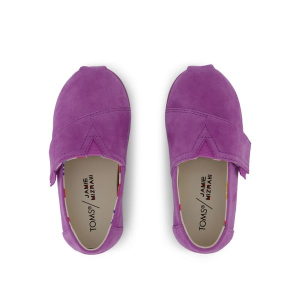 The Alpargata Classic 3.0 shoe for toddlers: Visually stunning and made to pop. Your mini can put them on themselves with easy hook and loop uppers and a roomier entry. Finished in brightly colored suede.Suede upper. TOMS leather products support responsible manufacturing via the Leather Working Group.
