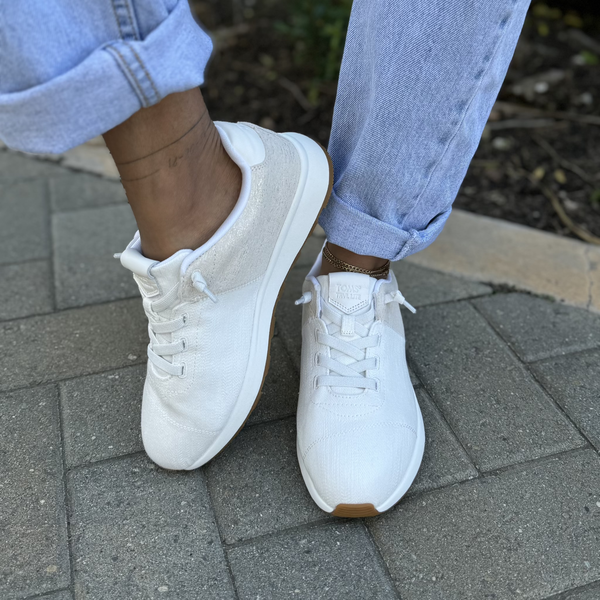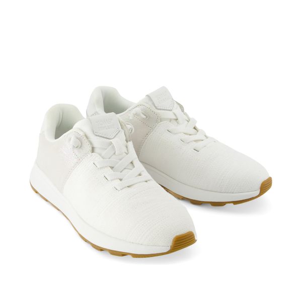 New to our TRVL LITE collection: the sporty and minimalist Cabrillo sneaker. This versatile tennis shoe features stretch laces for easy on and off, plus Scotchgarded uppers to repel water and stains. Casual comfort for days on the go. Textured jacquard and iridescent suede upper. TOMS leather products support responsible manufacturing via the Leather Working Group.
