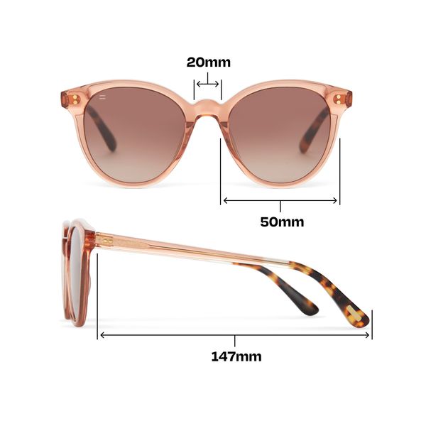 Don’t miss out on sunny days. Brave the sun with our Aaryn UVA & UVB-protected frames. Made with a apricot crystal gradient finish to bring you all the style.Frame dimensions: 50-20-147 MM