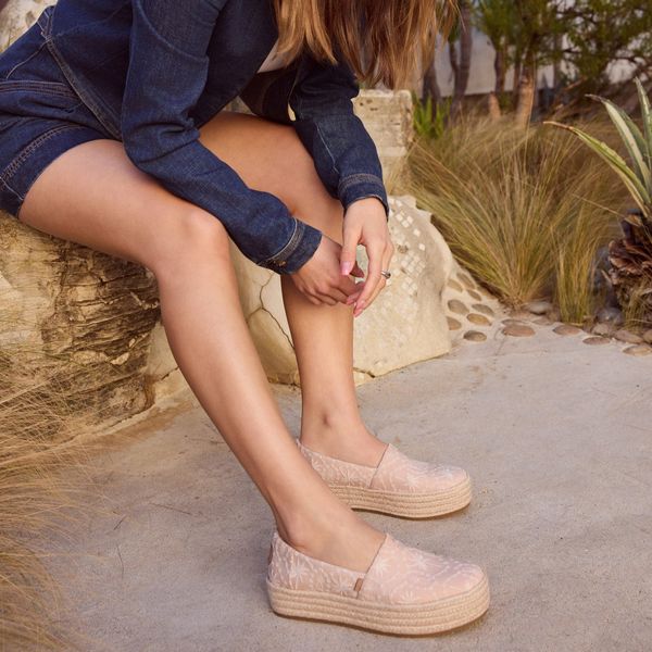 Espadrilles, up a notch. The Valencia platform slip-on shoe stands tall on a rope-wrapped platform with tropical print textile uppers featuring eyelet details. Cushy CloudBound™ insoles provide support, breathability and comfort on the go.Textile upper with eyelet detailing.