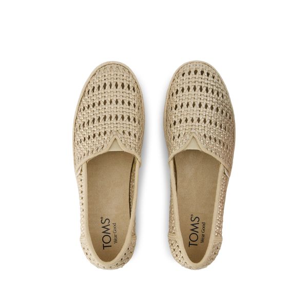 Champagne Metallic Basket Weave, 10021921TOMS run true to size and are available in medium width only. We recommend ordering the size you normally wear. If you are typically in between sizes, we recommend going with the smaller one since TOMS will stretch slightly as you break them in.
